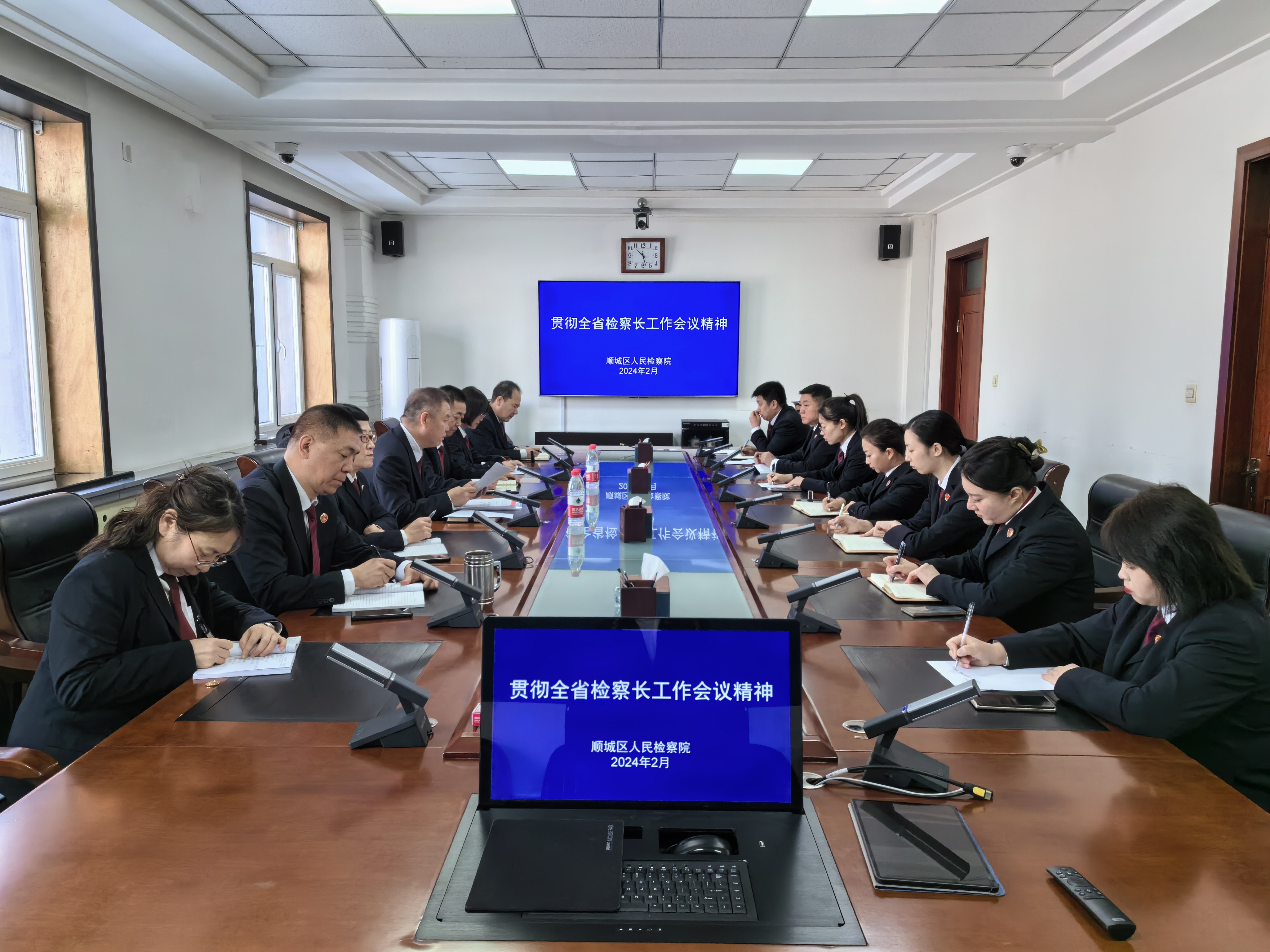 2月5日,顺城区人民检察院召开党组(扩大)会议,学习贯彻落实全省检察长会议精神,研究部署贯彻落实举措。院党组书记、检察长徐刚主持会议,院领导班子成员、各部门负责人参加会议。